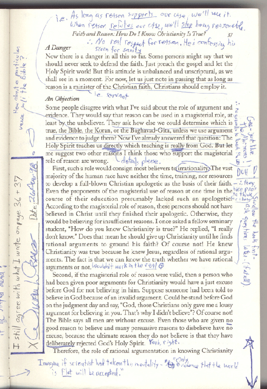 For example, one of the leading Christian apologists, Dr. William Lane Craig blatantly states that "as long as reason is a minister of the Christian faith, Christians should employ it... I once asked a fellow seminary student "How do you know Christianity is true?" He replied "I really don't know." Does that mean he should give up Christianity till he finds rational arguments to ground his faith? Of course not! ...The fact is we can know the truth whether we have rational arguments or not..." ( Reasonable Faith: Christian Truth and Apologetics by William Lane Craig, Crossway Books, Wheaton, Ill, first pub. 1984 Moody Press, revised edition 1994, p. 36-