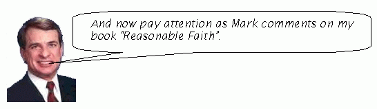 You may be asking yourself, why is Mark linking to a site that hopes to prove Mark is full of crap. Good question. I do so so that all may see the weakness of the Christian arguments. I do so so that all may realize that "Hey, if THIS is the best they can come up with to refute what Mark has written, maybe what Mark has written is true after all." You see, REAL truth doesn't need to run and hide from those who disagree with it, nor does it need to censor the opposition. What I have written in Contra Craig is the truth, to the best of my ability, and if anyone can show via evidence and argument where I've gone wrong, have at it! I've changed things in this site before due to what some have pointed out to me, and I can change them again. I'm not married to any of the views here, but you'd better have a damn strong argument to back up your complaints.